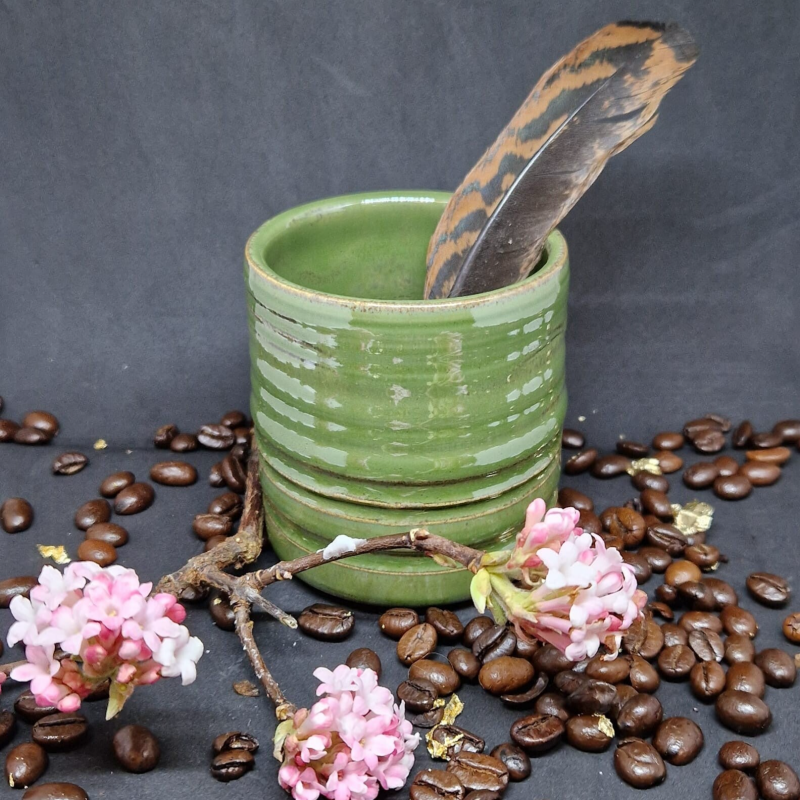 Omdat het lastig is om groter gewicht aan klei te centreren, richt ik mij voorlopig op het maken van bekers, en dat is ook wel wat ik heel leuk vind. Ik kan hier al mijn creativiteit in kwijt met vormgeving, decoratievormen en kleur.